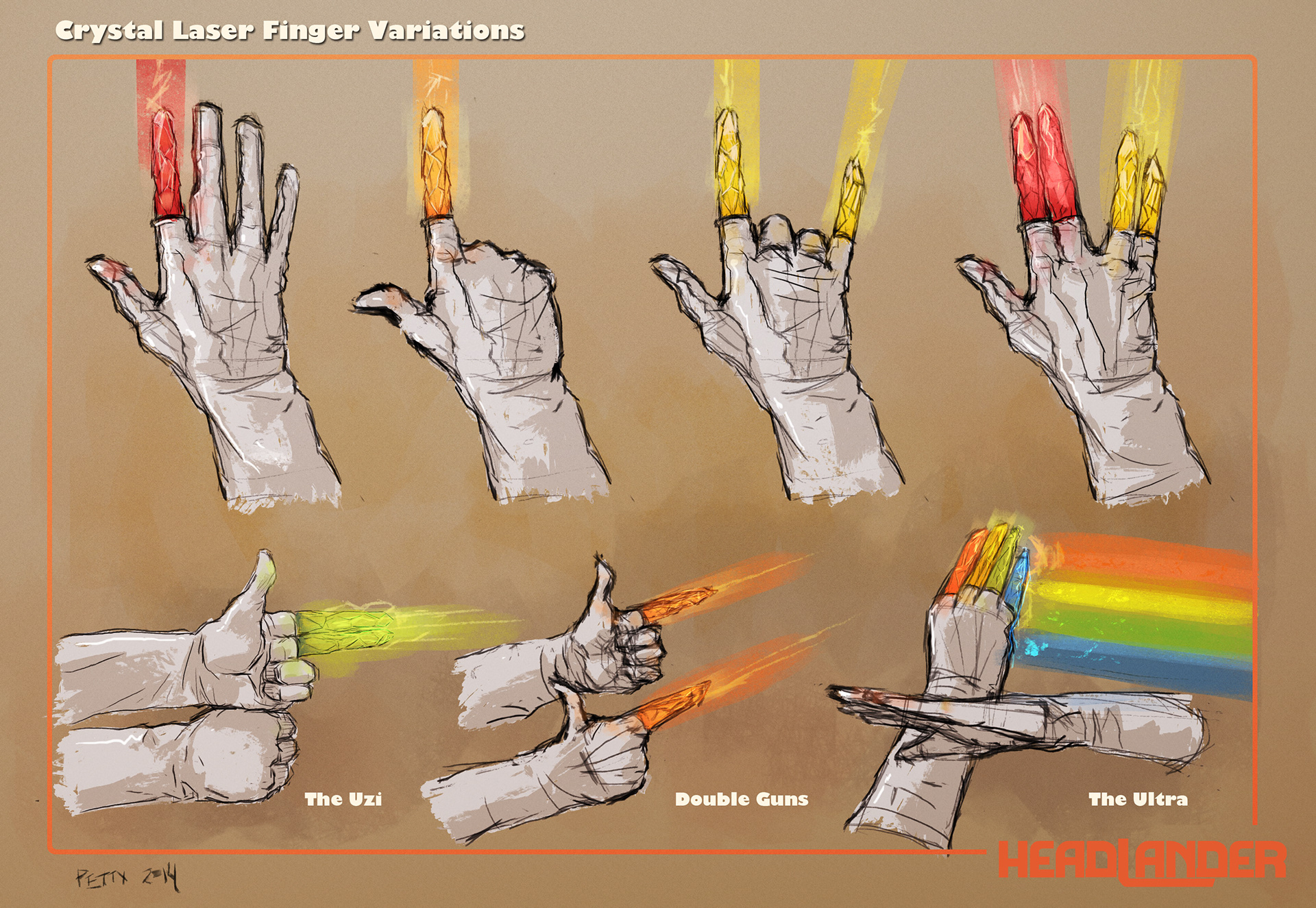 This concept explored the idea of the enemies using LASER FINGERS as their sole weapon, with different finger configurations forming different weapons. This idea was abandoned because the enemy size on screen made this impossible to see.