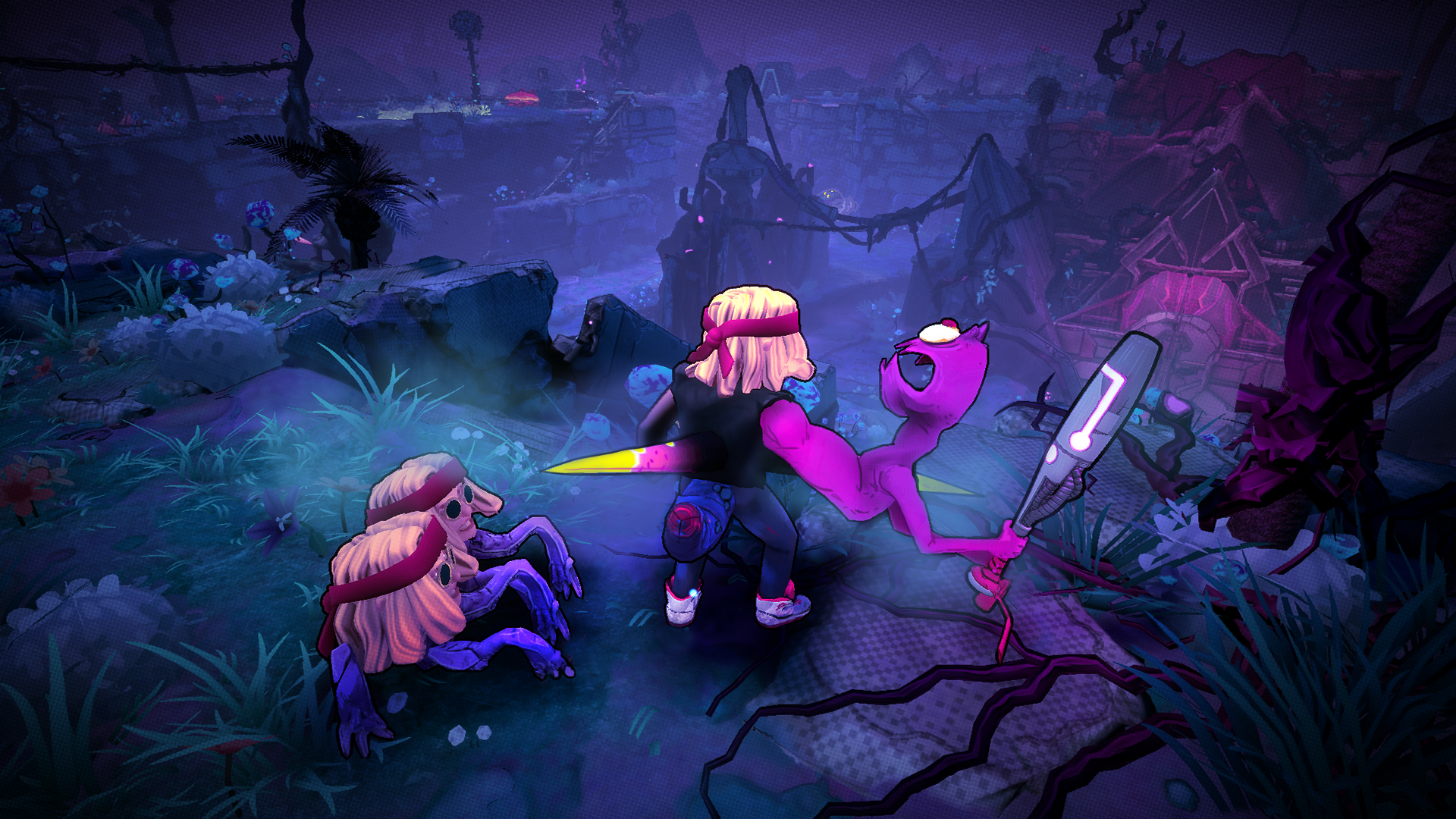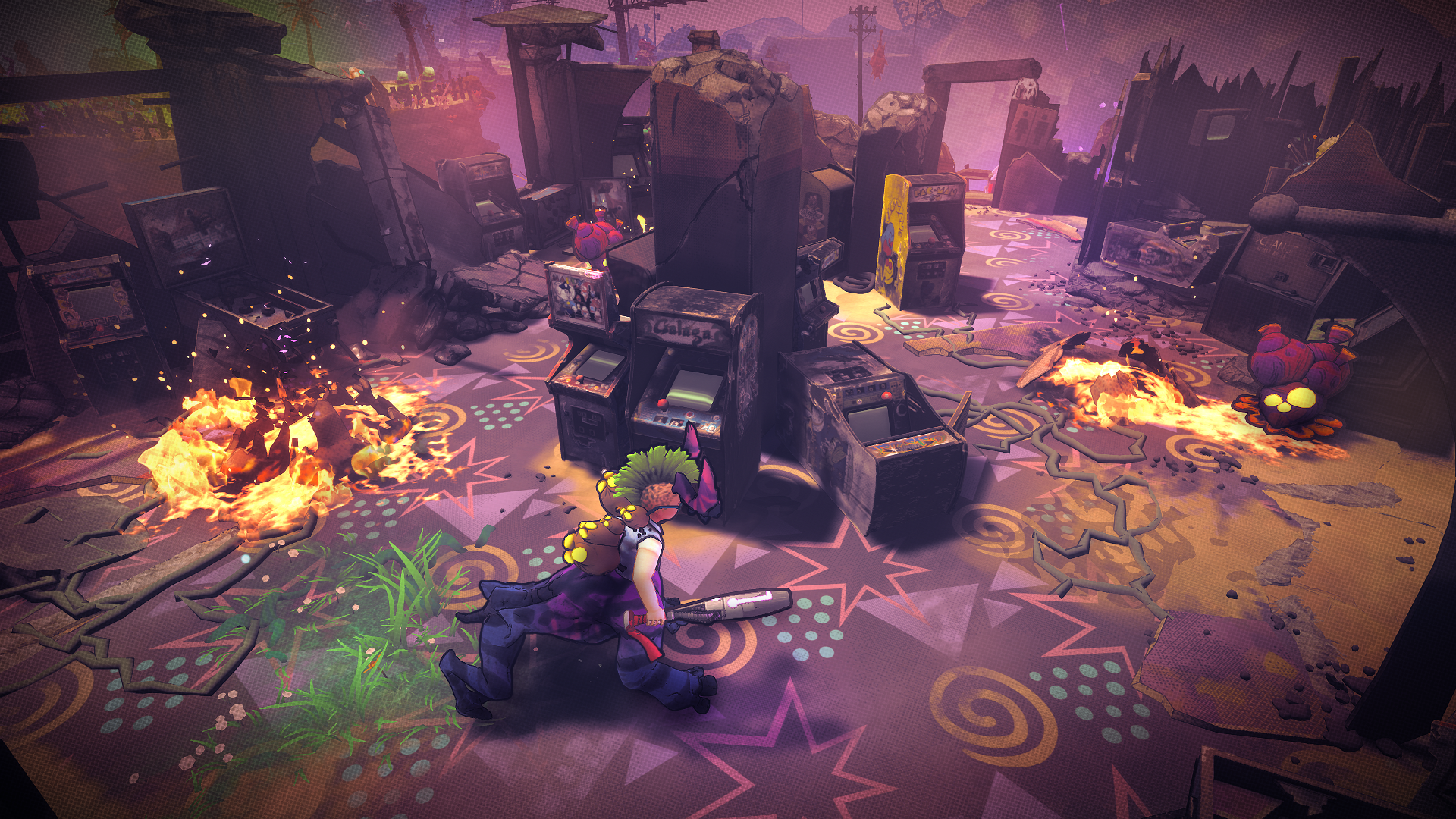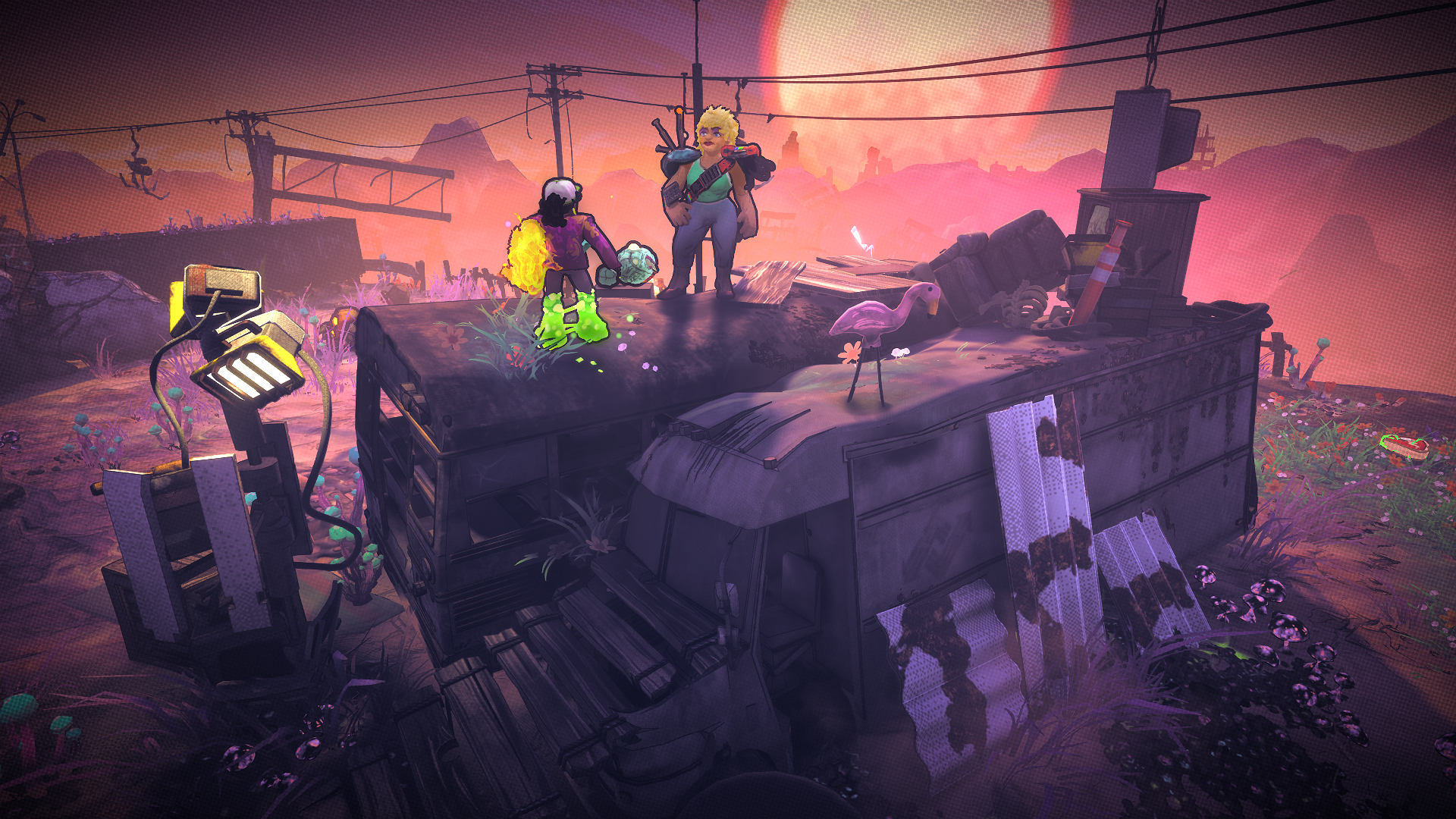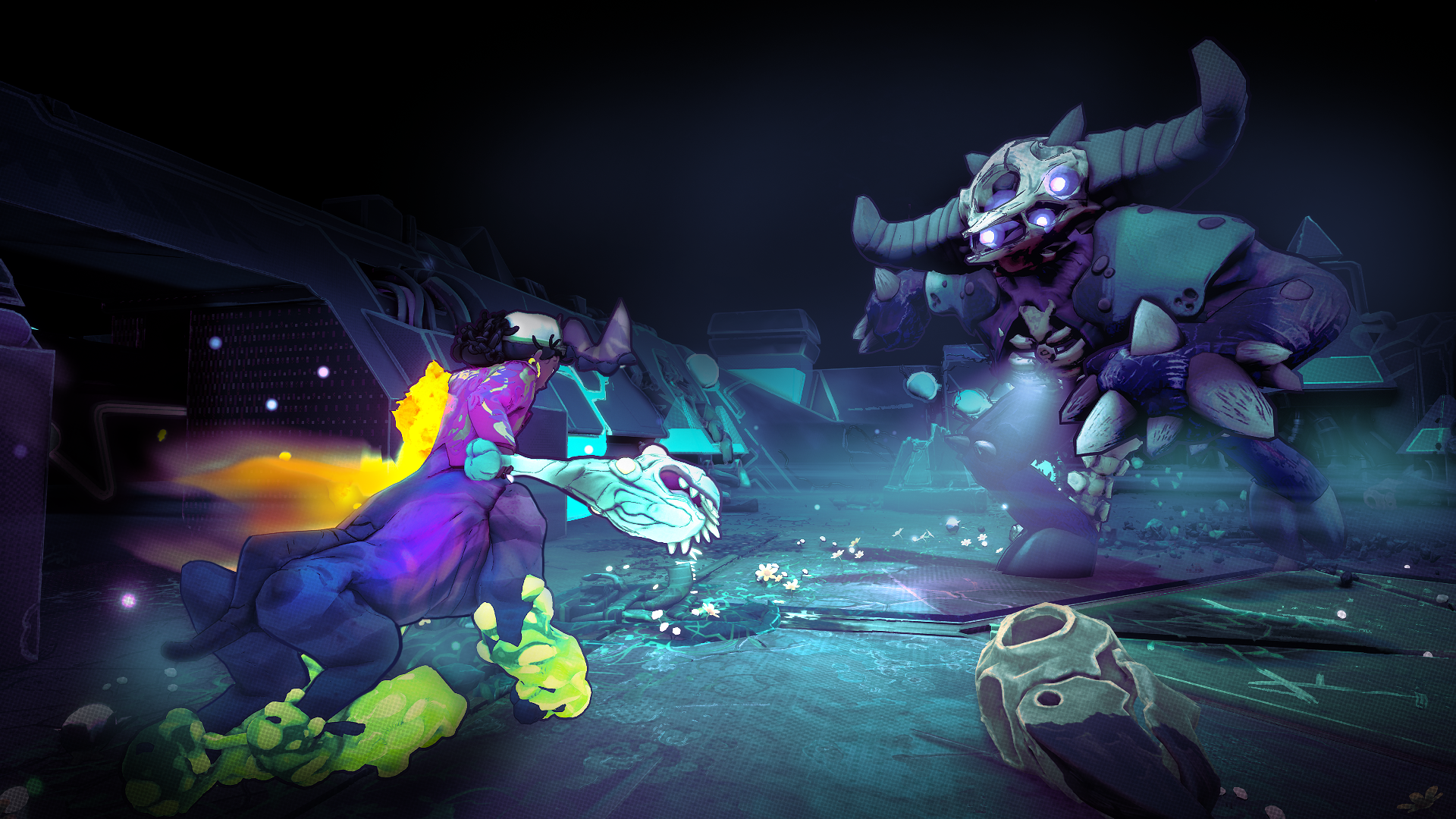 I created the "Rad Skull" image for the Main Menu in the game and it was also used in marketing-related art. The skull has a Mohawk made of grass because the player character grows new life as they make their way through the wasteland.