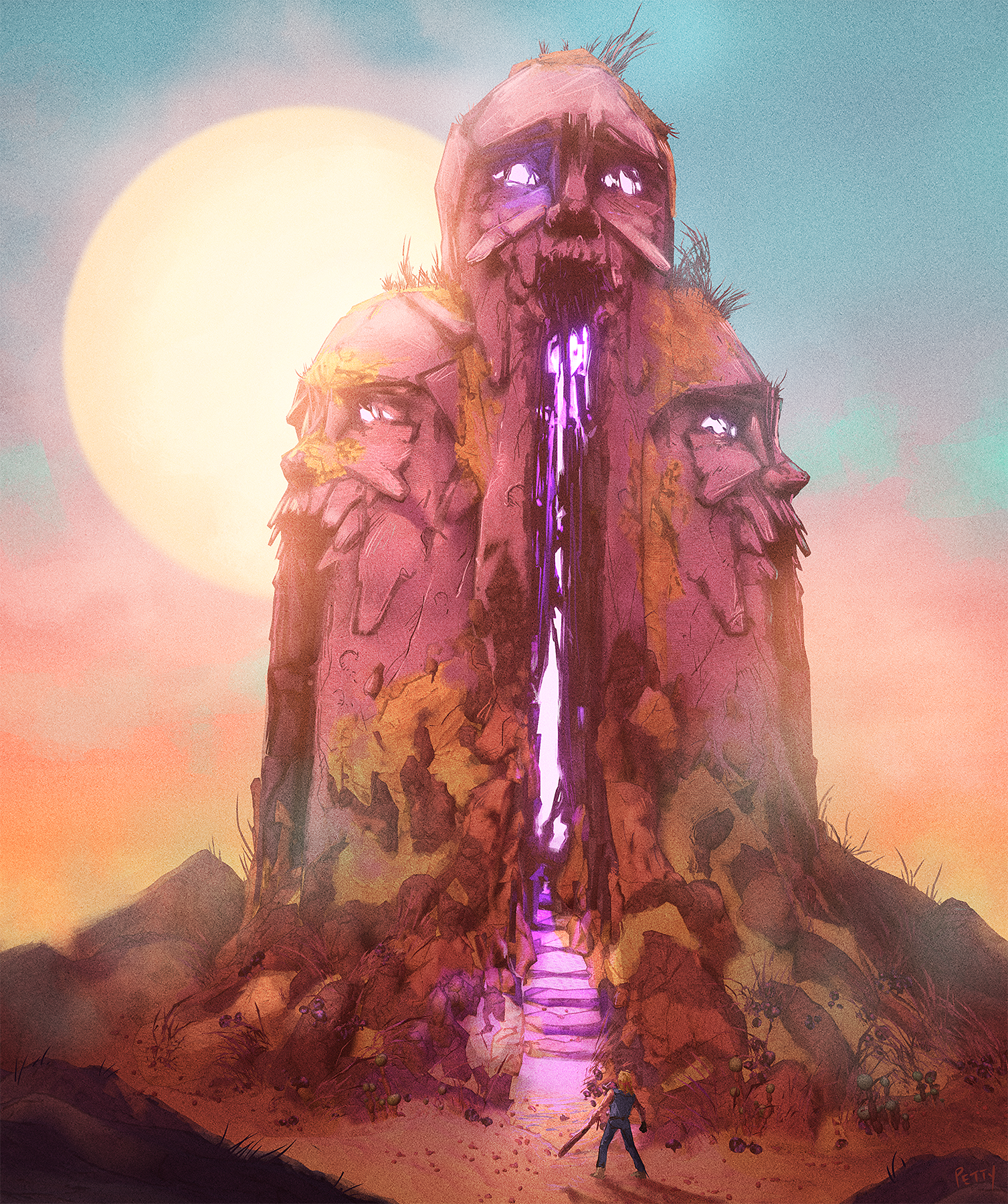 "Mender Tower" is an early concept piece I did for RAD. This piece was selected to be a part of 2019 Into the Pixel art show. https://www.intothepixel.com/artwork/2019_contest_winners.asp