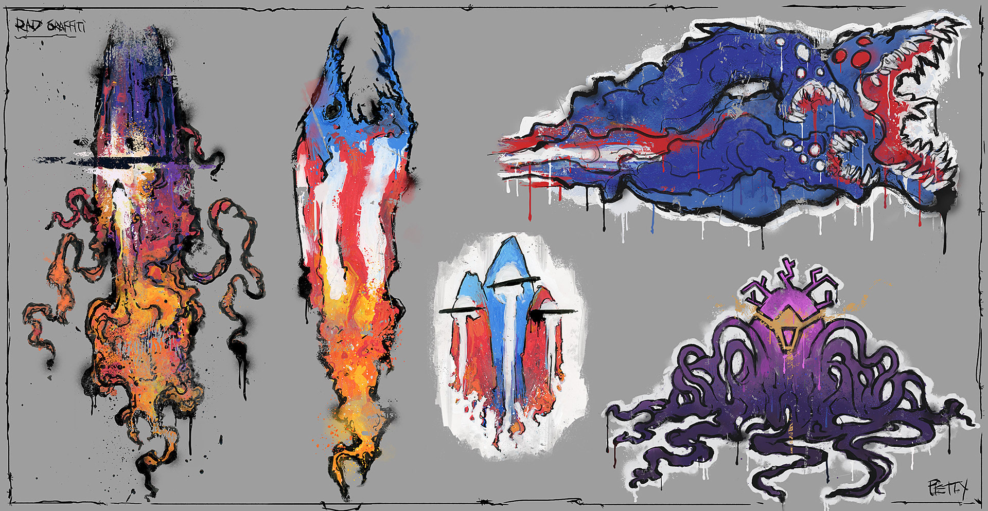 Graffiti designs sprinkled throughout the game world that echoed the backstory and lore.